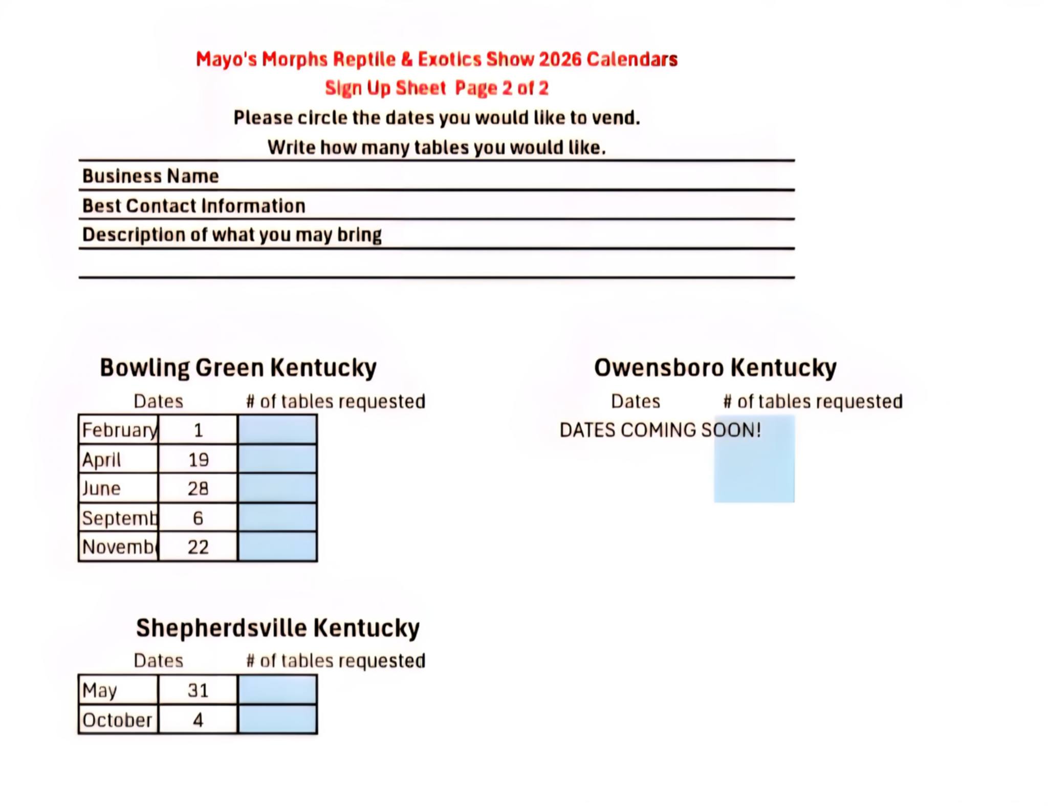 Here are our 2026 show dates! Be sure to mark your calendars and join us. Vendors... we have our sign up sheets available here as well. Text Jeff at 270-748-5706 to get signed up. All additional information for each show can be found on our Show Page.